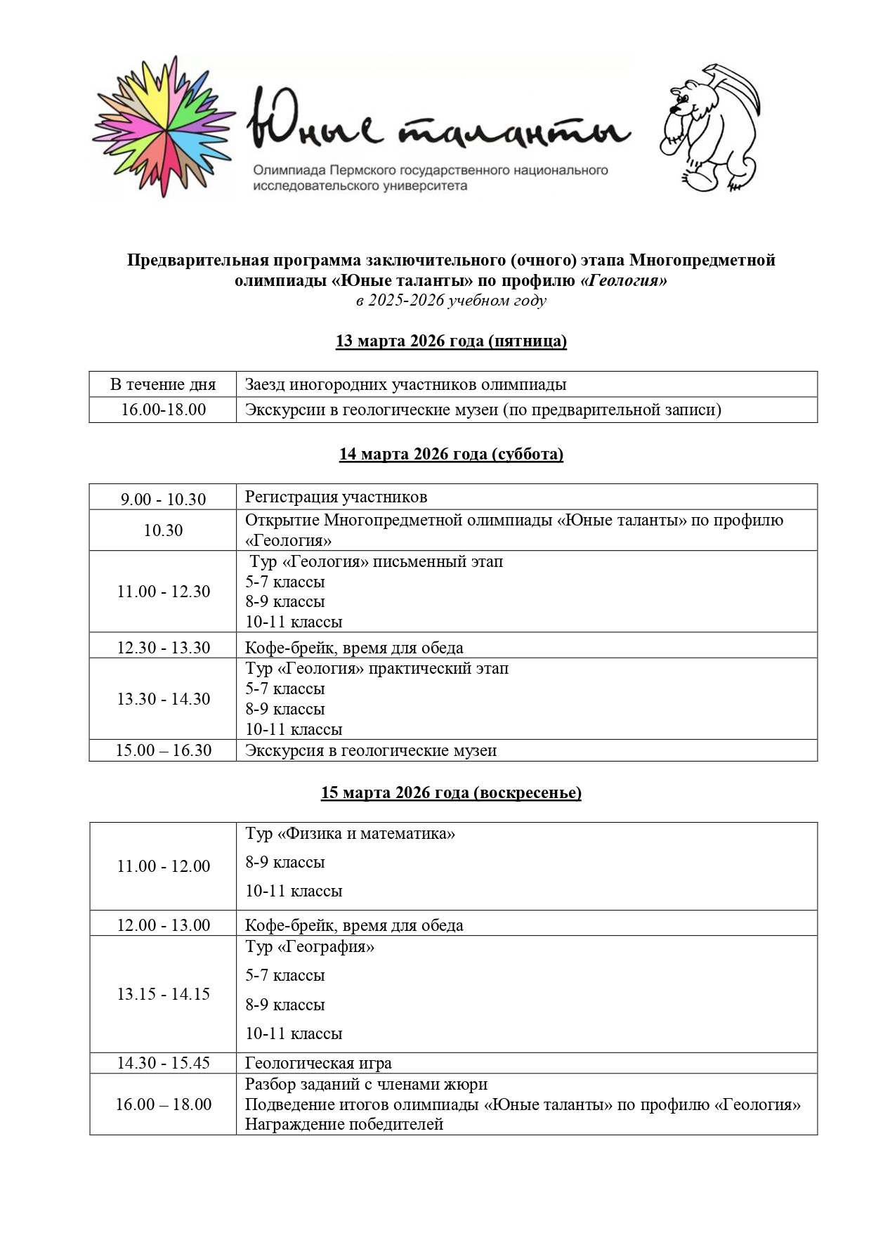 Регламент олимпиады по геологии